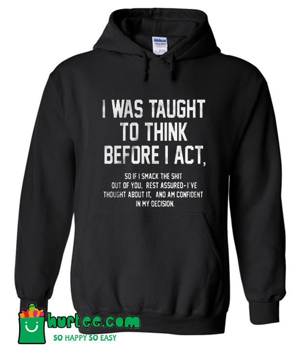 About I Was Taught To Think Before I Act Hoodie from hurtee.com