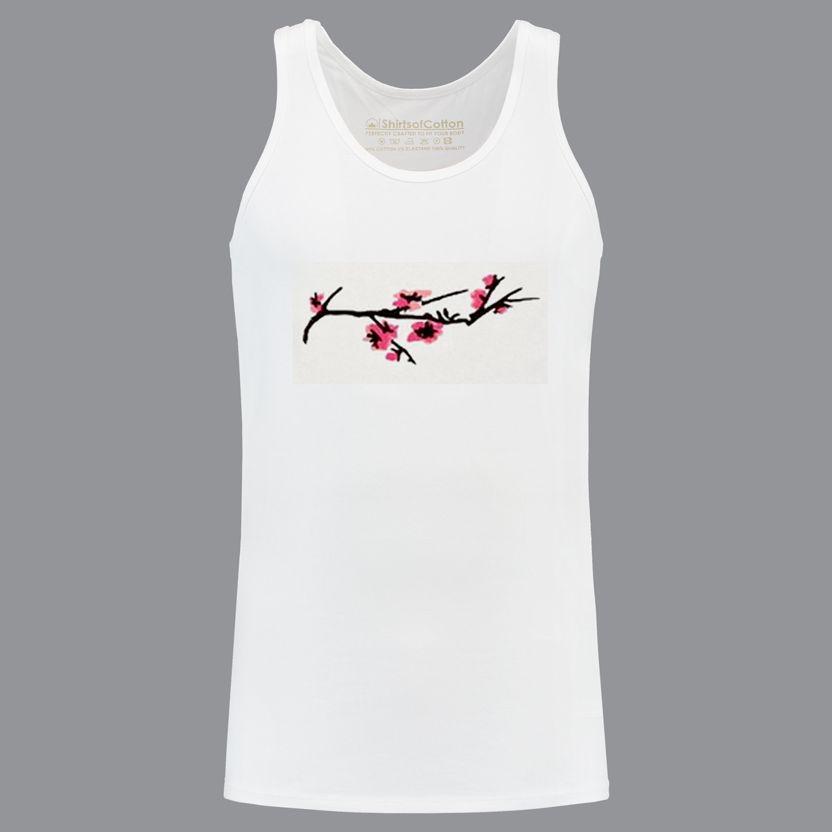 We use DTG Technology to print Pink Flower Tanktop.