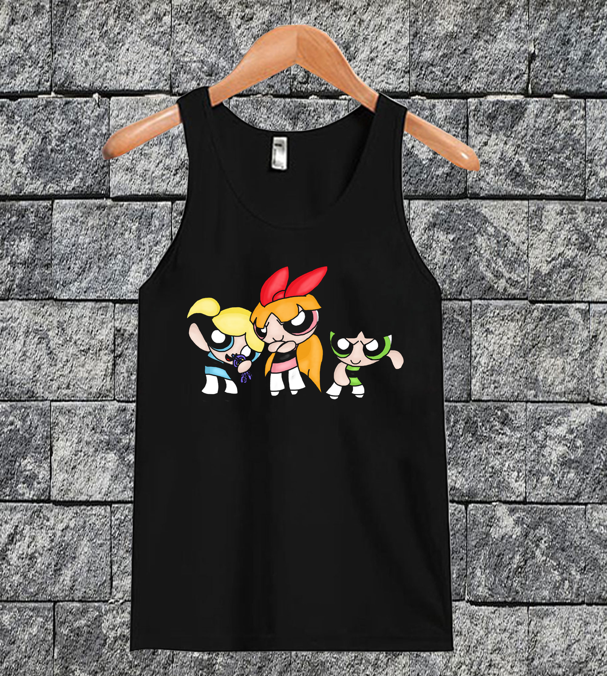 About Powerpuff Girls Tanktop from hurtee.com This tank top is Made To Order, one by one printed so we can control the quality. We use newest DTG Technology to print on to tank top. Color variant is black, white.